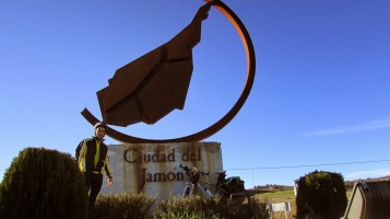 Faltaba poco para cruzar «fronteras» y me emocionaba con cada pedalada que daba. El camino se prestaba a ello una suave pista con altibajos suaves, con buenos paisajes y zonas verdes, que mejor recibimiento que entrar en tierras extremeñas entrando en Monesterio, la tierra del jamón!!!! Y la muchacha del museo del jamón con el letrero de vuelvo enseguida puesto, y nada que no volvía, así que me tocó sellar en un hotel cercano al menos dejar constancia de mi paso por allí, la salida de Monesterio entre riachuelos, dehesas, cerdos de bellotas y encinas es para disfrutarlas, me está gustando a mi el