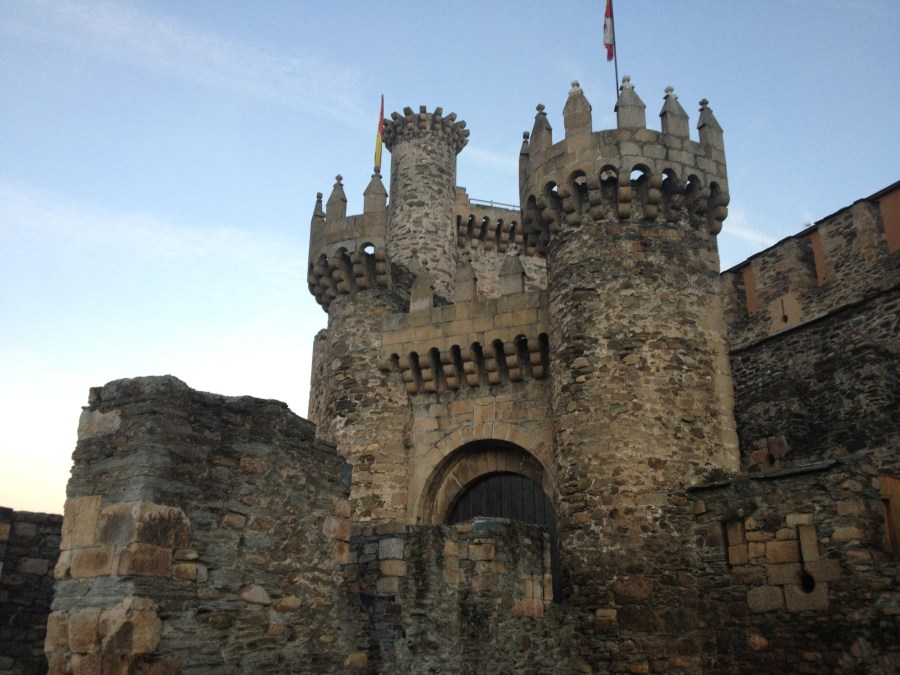 Lo mejor sin duda ha sido la subida y bajada a Ponferrada con camino pedregoso, trialera natural de las de molinillo y subir poco a poco! Pero a disfrutar! Bajada de la misma forma! Camino de los que si mi madre me ve me pega un alpargatazo y no me deja salir mas de mi casa en bici Jajajaja. Pero naaaa pa lante! Ojos que no ven… Xd. Por el caminos hemos visitado un albergue muy peculiar, un albergue Templario! Un chavolito en medio de una subida en la que había infinidad de letreros con las distancias a las grandes ciudades del Mundo! Estaba chulo! De paso le he echado la fotito a la bandera de mi amiga Isa, que por cierto en Astorga nos recibió un pariente suya jeje, una Lupita mexicana!