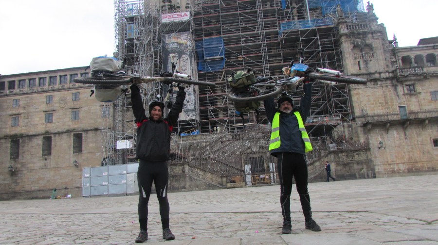 – Padre… bienvenido a la gran Plaza del Obradoiro, bienvenido a la majestuosidad de la Catedral del Santo Apóstol Santiago. – Abrazos, emoción, fotos, plazas aún desiertas. – Amarremos las bicis- ¿En la Puerta de una Iglesia?- Nunca se sabe viejo- Entrada a la Catedral: una misa bajo aquél botafumeiro colgante y un canto celestial de una monja hermana junto al altar.