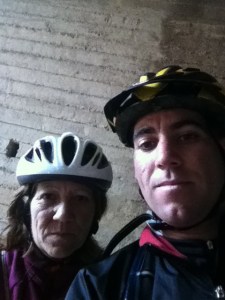 A pocos km de Coria del Río, nos vemos sorprendidos por un señor barrizal rojo de los q te imposibilita el giro natural de la rueda que nos ha hecho sufrir de lo lindo y sacar lo mejor de nosotros mismos, la gran nube oscura que nos saludaba desde q salimos de Sanlúcar no pudo darnos más tregua y finalmente acabaría por darnos un remojón. Llegaríamos a la barcaza de Coria empapados pero satisfecho por haber logrado una etapa de casi 110 km que para ser el primer día… ya es más q único y suficiente.