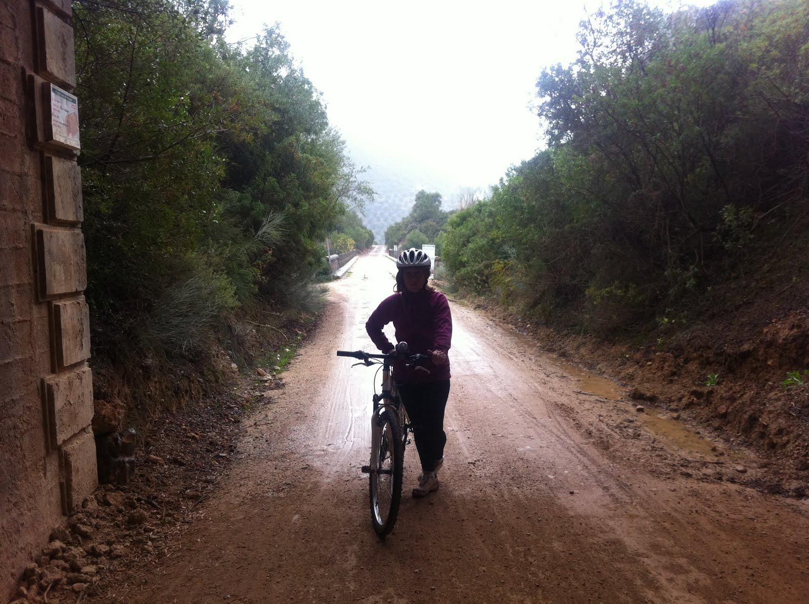 A pocos km de Coria del Río, nos vemos sorprendidos por un señor barrizal rojo de los q te imposibilita el giro natural de la rueda que nos ha hecho sufrir de lo lindo y sacar lo mejor de nosotros mismos, la gran nube oscura que nos saludaba desde q salimos de Sanlúcar no pudo darnos más tregua y finalmente acabaría por darnos un remojón. Llegaríamos a la barcaza de Coria empapados pero satisfecho por haber logrado una etapa de casi 110 km que para ser el primer día… ya es más q único y suficiente.