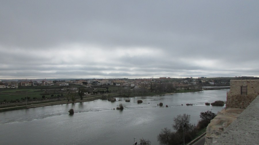 Bordeamos el embalse de Ricobayo y a las obras acabamos metidos en un barrizal sin salida toca retomar y meternos por una carretera en obras, saltar las barras separadoras y seguir que aquí no ha pasado nada…. Rumbo a Benavente el paisaje se vuelve verde que nos deleita con grandes paisajes y contrastes de azul del cielo ya que la niebla ha desaparecido en la jornada de hoy y el cielo se prestaba despejado! Benavente lo cruzamos por un antiguo Puente de Tren en desuso sobre un río, curiosa y bonita estampa.