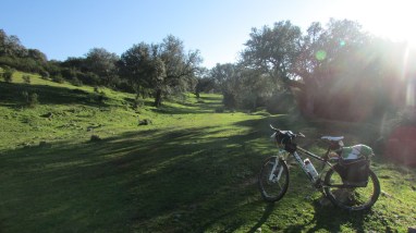 Llego a Cañaveral y disfruto de un suculento menú, sopa castellana y otra prueba, al final les cojo tirria jajaja de postre su dulce de yema. Pa lante! Y me salto la regla del código civil del ciclo turista, 33.2 epígrafe B «Antes de darte un atracón de comida consultar la siguiente etapa«…que trabajo me ha costado la etapa siguiente! Que repechos! Se ha hecho larga la etapa!!! Pero naaaa, conseguía! Lo peor ha sido la infinidad de cancelas que he tenido que abrir y cerrar, unos monstruos estos ganaderos que con 4 palos y un viejo somier te hacen subir y bajar 1000 veces de la bici! Señor ministros de Medio Ambiente extremeño ponle un «porterillo» electrónico hijo! Ya no cierro mas ni una ya se puede escapar la vaca, el búfalo o el koala de turno! Jajajaja que «Jartura»!